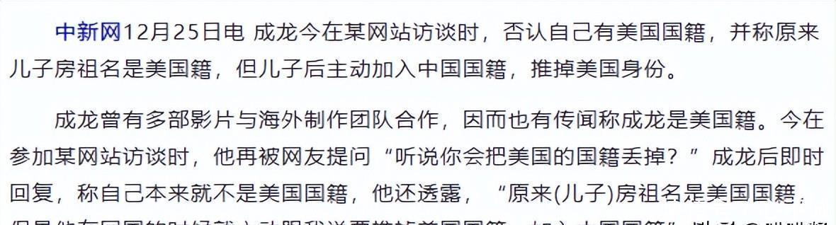 中国新闻网——成龙否认有美国国籍 曝儿子房祖名脱美加入中国籍