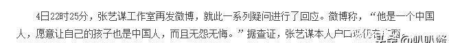 面对这样的追问,张艺谋没有回避,而是通过工作室发布声明。声明掷地有声的回应:“他是一个中国人,愿意让自己的孩子也是中国人,而且无怨无悔。”