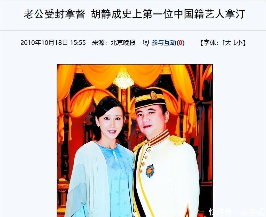 04胡静嫁入马来西亚百亿豪门,还被皇室封为“拿汀”,胡静却始终坚守中国国籍,这份清醒着实难得。2008年,胡静与马来西亚富豪朱兆祥举行婚礼,婚后随丈夫在马来西亚生活,。2010年更是与丈夫一同受封拿汀拿督,成为首位获此殊荣的中国籍女艺人。